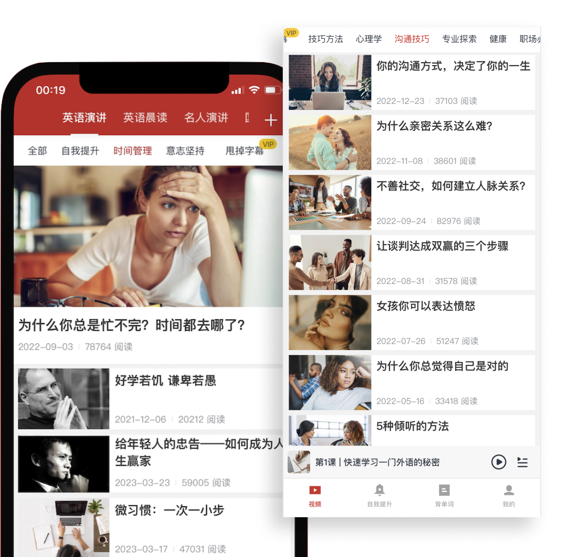 汇集世界经典演讲片段,覆盖自我提升、沟通技巧、